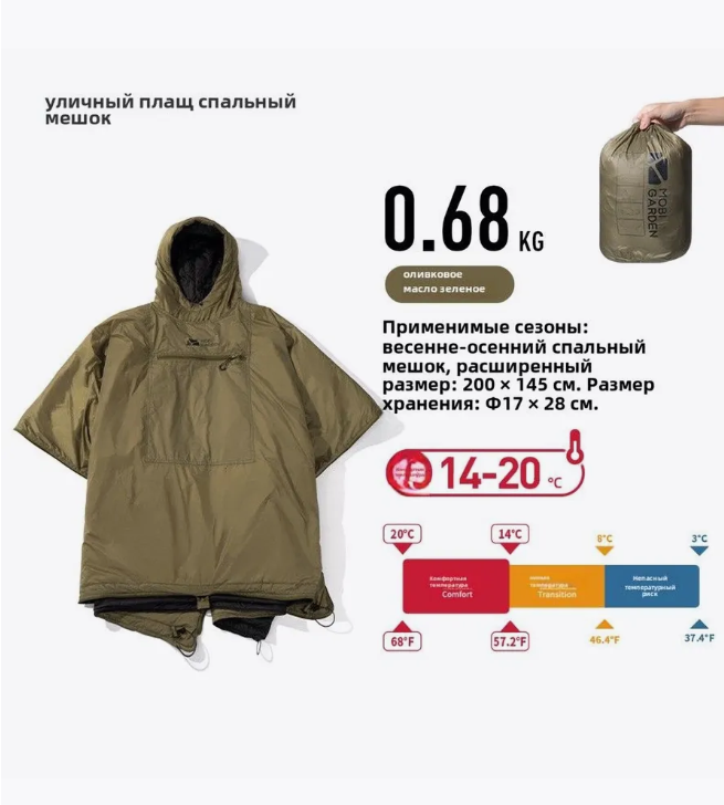 MOBI GARDEN Туристический спальный мешок с накидкой