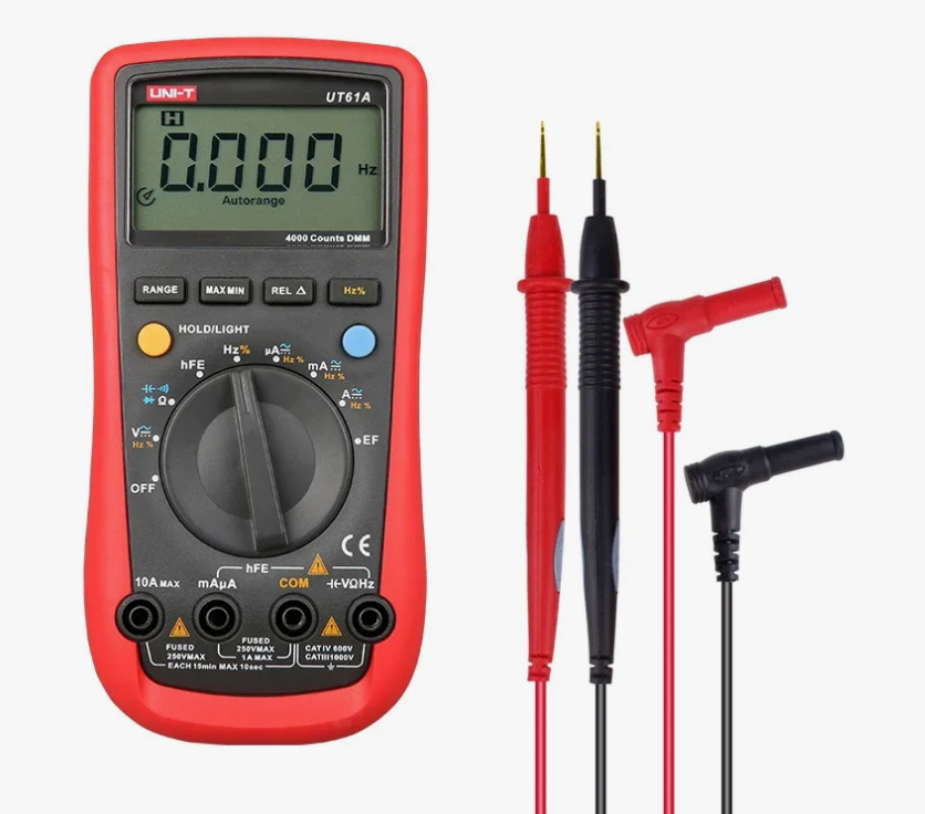Профессиональный мультиметр UNI-T UT61A прост и удобен в обращении. Пригодится для измерения напряжения, силы тока, сопротивления, емкости и частоты.