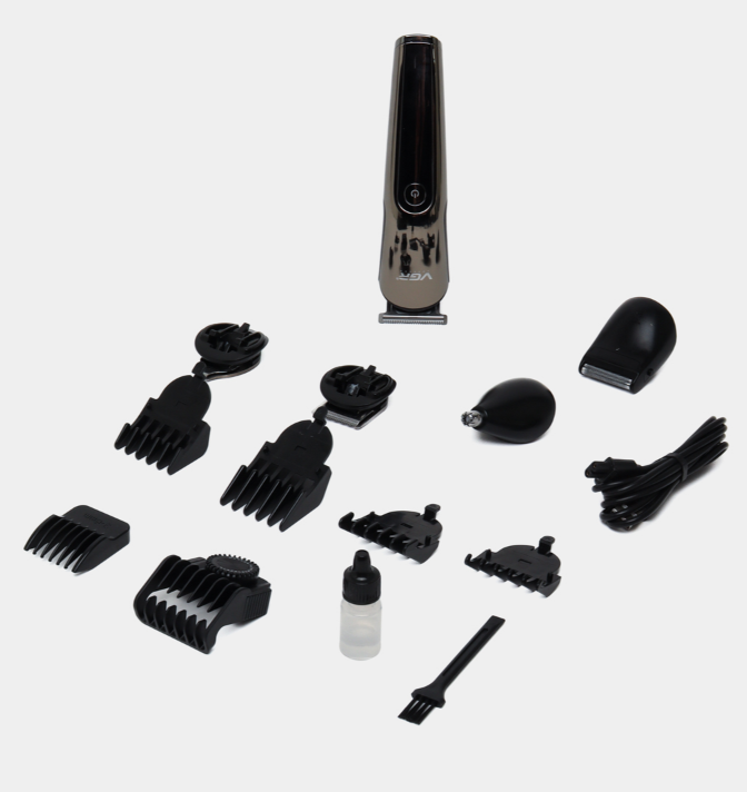 Масло 1 шт. Щетка для очистки 1 шт. USB-кабель - 1 шт. 1 насадка с регулировкой длинны 1-10 мм с шагом 0,5мм Гребневые насадки-5 шт. 3мм, 3-6мм, 6мм, 9мм, 12мм. Узкий триммер 1 шт. Триммер для носа 1 шт. Дизайнерский триммер 1 шт. Насадка для стрижки волос 1 шт. Бритвенная головка 1 шт. База 1 шт.