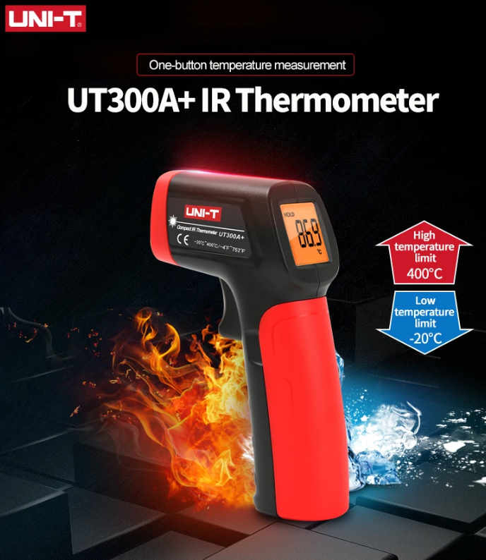 Цифровой инфракрасный термометр-пирометр UNI-T UT300A+, -20c/+400c, 00-00004258 предназначен для бесконтактного измерения температуры.