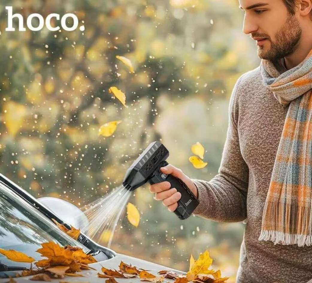 Hoco HX67 сдует пыль, почистит поверхность от крошек и опилок, готов почистить ваг авто от листьев, а также его удобно использовать для разведения костра, а в жакркий летний день будет создавать Вам прохладу. Основание дает возможность использовать данный вентилятор как настольный. LED цифровой дисплей имеет 2 функции-сигнализирует об остаточной емкости встроенного аккумулятора и показывает уровень вентиляции.
