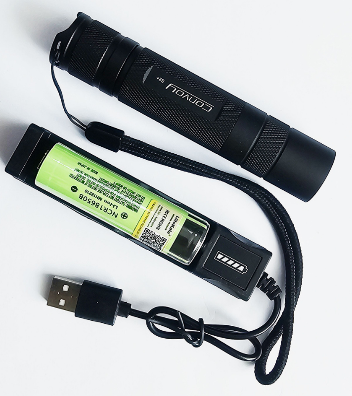 Комплект: фонарь Convoy S2+ с аккумулятором EVE-INR18650/35V (3500мАч, продолжительный ток разряда 10А) и зарядным устройством XTAR MC1 (зарядный ток до 1А, Type-C).