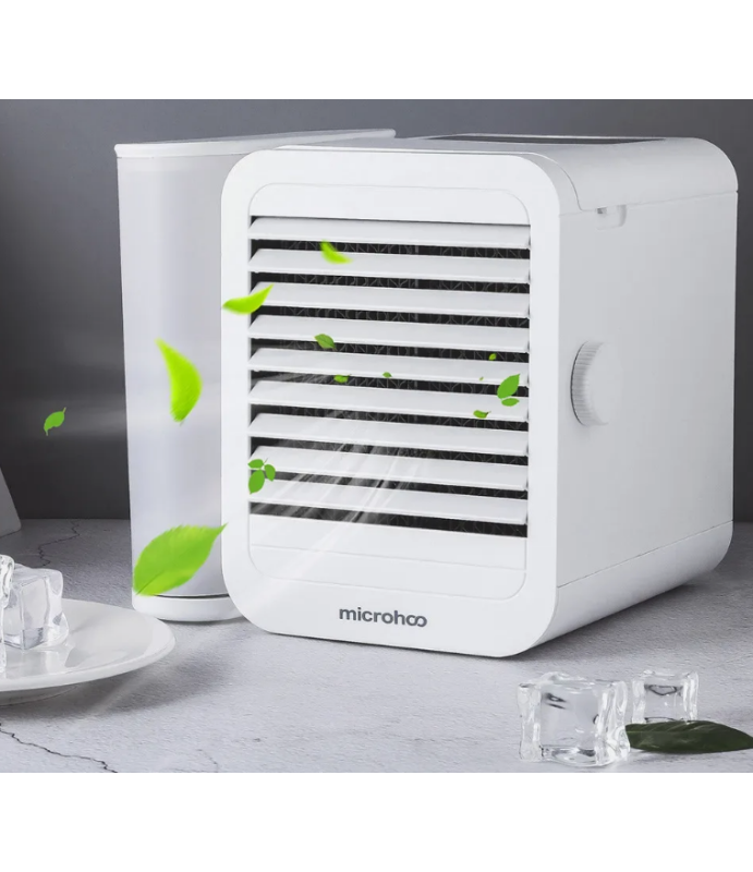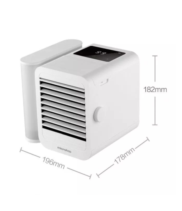 Microhoo Mini Air Conditioning Fan – это портативный кондиционер, который можно расположить прямо на своем рабочем столе. Он оснащен сенсорным дисплеем, с помощью которого можно настроить режим его работы. Прибор сможет создать максимально комфортную среду для работы и учебы. При этом шум от его работы минимален.