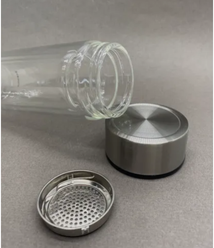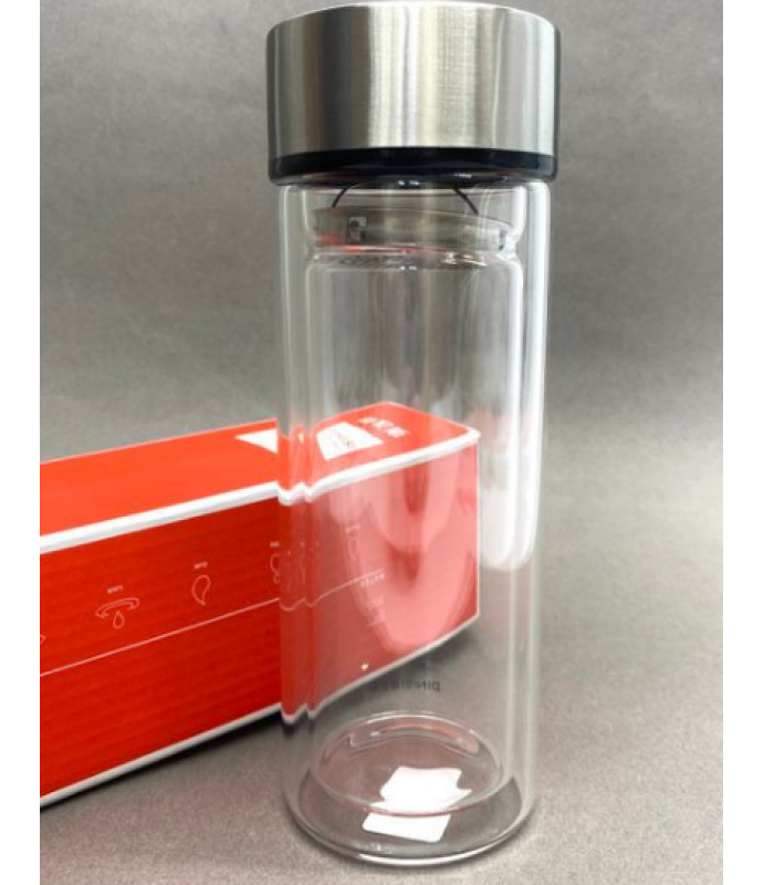 Фляга-термос из двухслойного стекла с металлическим фиксирующимся ситечком. Предназначена для заваривания чая и поддержания температуры. Предполагает два способа заваривания: 1. Установить ситечко, зафиксировать его, насыпать сухой чайный лист, залить водой нужной температуры, перевернуть, выждать необходимое для настаивания время, снова перевернуть, открыть крышку, вынуть ситечко. Чай готов, можно пить.2. Засыпать сухой чайный лист, установить и зафиксировать ситечко, залить водой требуемой температуры, выждать необходимое время, открыть крышку, разлить чай по чашкам или пить прямо из фляги. Двойное стекло, во-первых, не дает обжечь руки, во-вторых, сохраняет температуру чая. Давайте беречь природу вместе - используйте стеклянную флягу-термос вместо одноразовых пластиковых и бумажных стаканов.