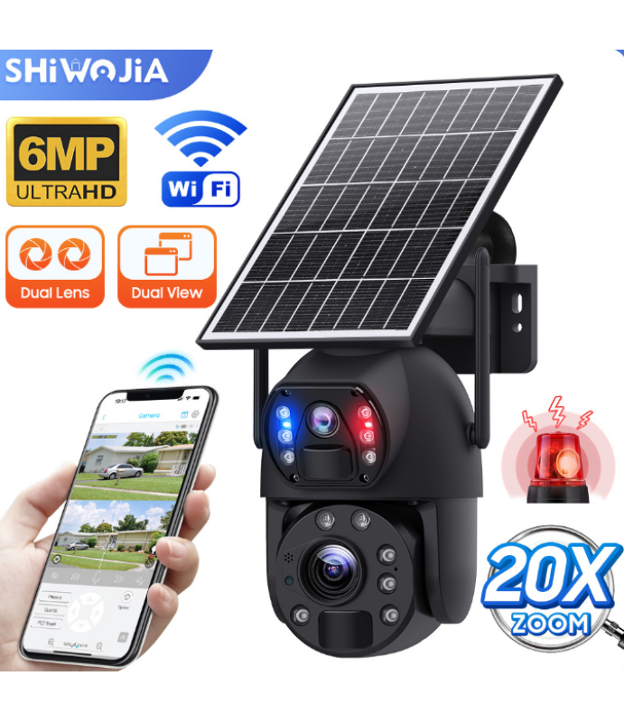 • Двойной сенсор: Со сверхширокоугольным объективом bullet camera + 20-кратным зумом, двойной объектив, два изображения для мониторинга, видео на большие расстояния, которое намного четче, расстояние PIR около 15 метров, более широкий диапазон обнаружения.